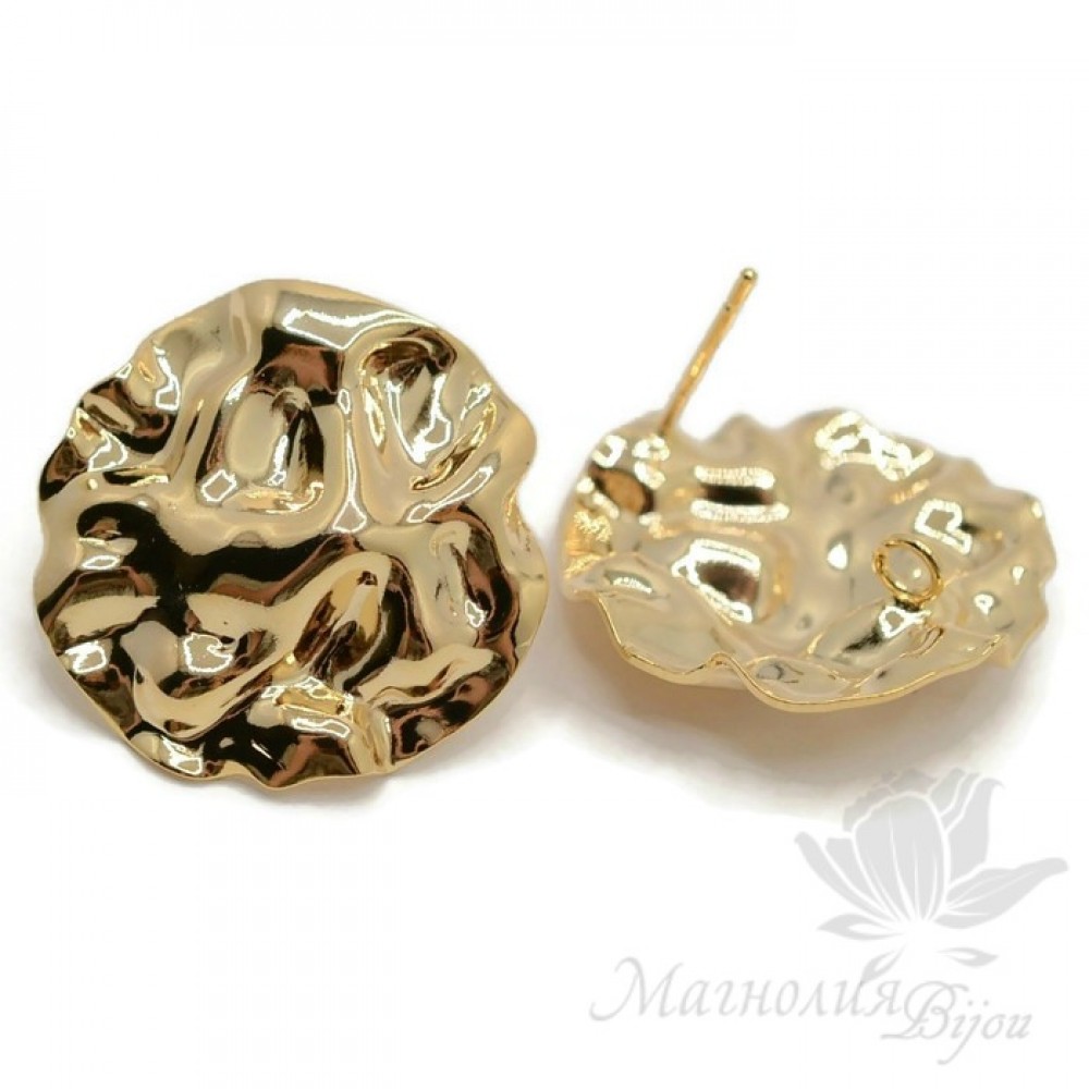Пуссеты "Мятый металл 23мм, позолота 18 карат