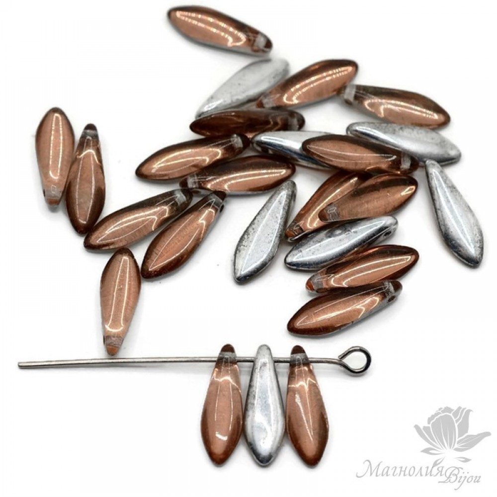 Чешские бусины знамениты не только качеством материала, но и огромным разнообразием форм, цветов и отделок. Одними из самых популярных среди них являются бусины в форме Dagger . В Чехии их называют jazycky (язычки). У нас же они больше известны как бусины-пёрышки, бусины-кинжалы. Форма бусин универсальна и позволяет использовать их в самых разнообразных украшениях.