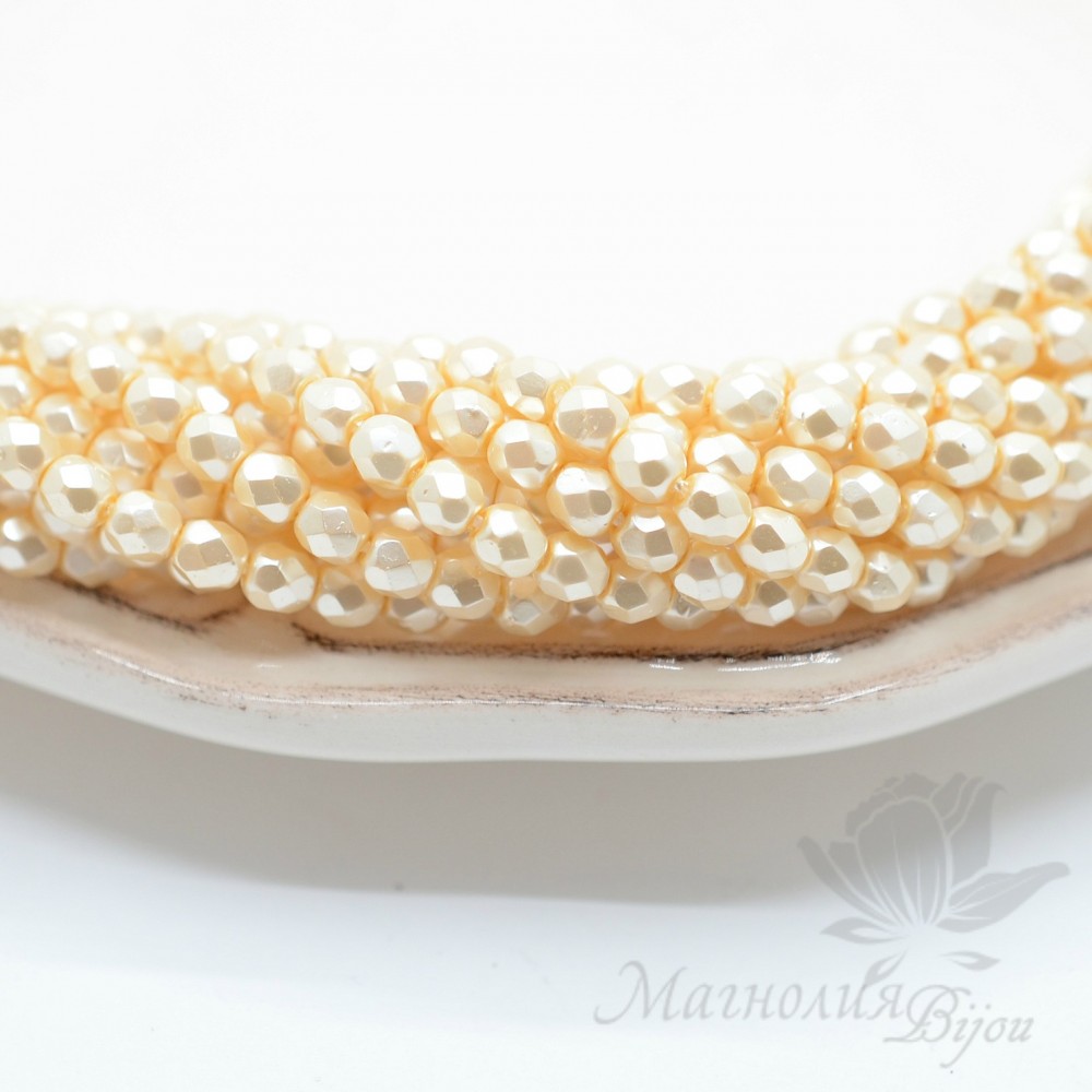 Чешские граненые бусины Pearls Cream 4мм, 20 штук