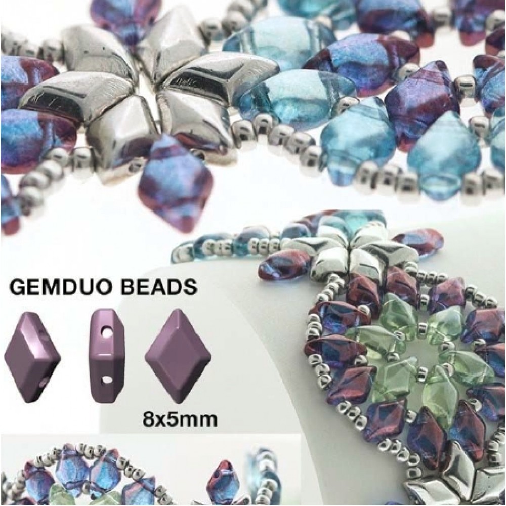 GemDuo(Matubo, Чехия) - бусины в виде ромбов с двумя отверстиями. Благодаря двум отверстиям, из этих бусин можно создать невероятные ювелирные изделия, экспериментировать с формами и дизайнами. Дайте волю творчеству и своей фантазии!
