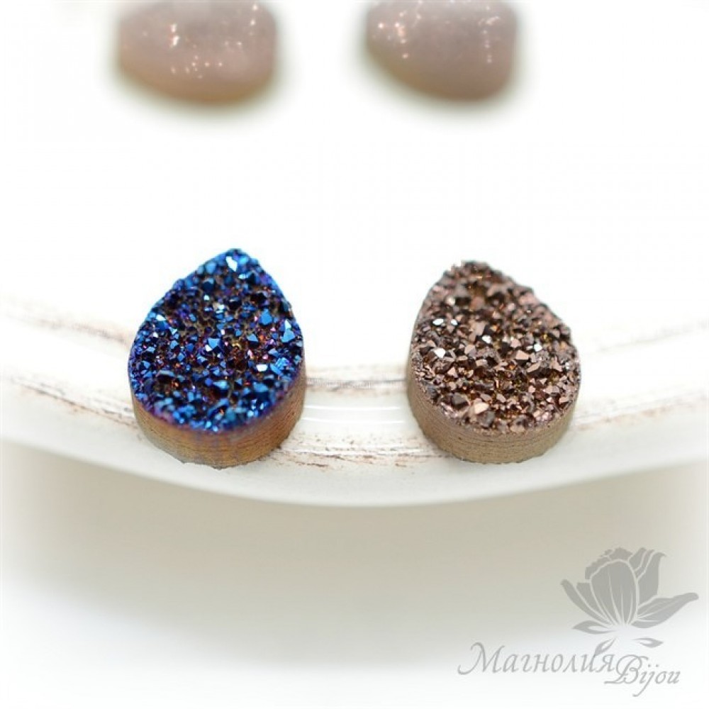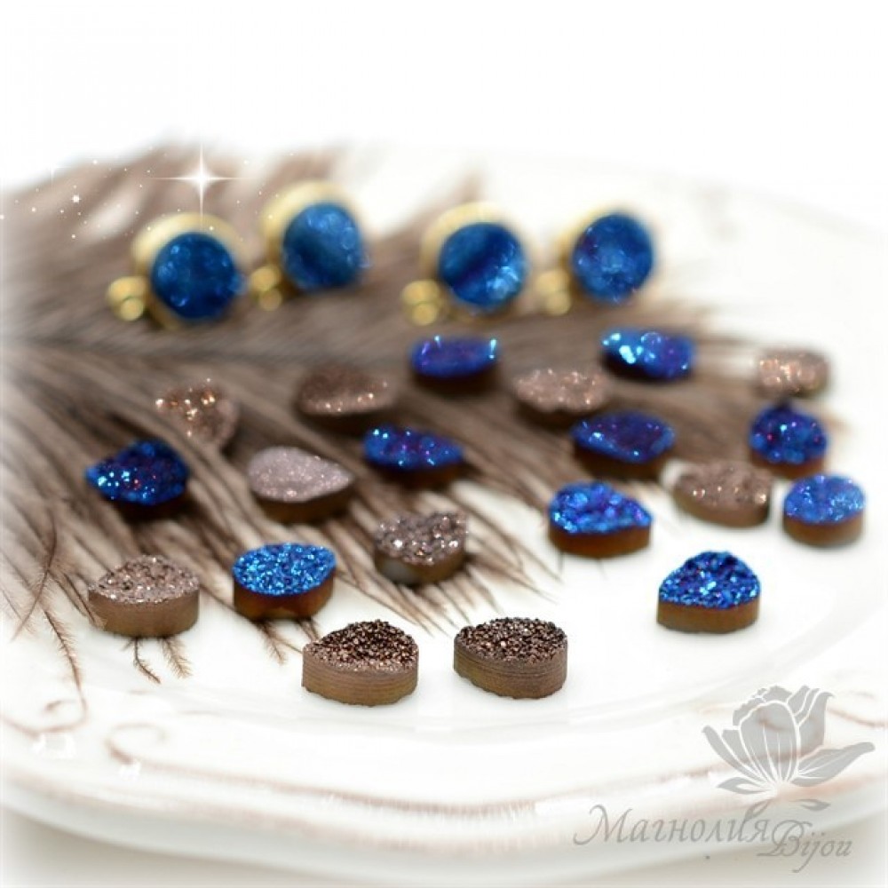 Естественный цвет Агатовой друзы – это исключительно приглушенные цвета, такие как белый, серый, коричневый и кремовый. Для придания окраски и более эффектного вида на Друзу напыляют микроскопический слой металла - титана, платины, золота или серебра, чтобы создать различные переливающиеся цвета и эффекты.