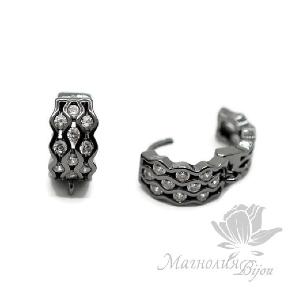 Pendiente redondo con circonitas "Olas", negro