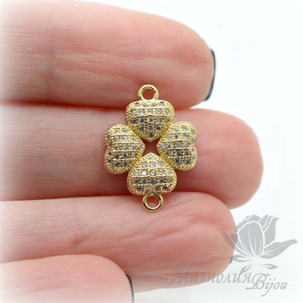 Особенностью данного вида фурнитуры является МИКРОИНКРУСТАЦИЯ цирконами(фианитами). Название произошло от итальянской технологии закрепления камней в изделии. Поверхность изделия получается как бы усыпанной камнями, находящимися очень близко друг к другу. Вся фурнитура производится на территории Китая, Сингапура, Тайланда. Качество изделий очень хорошее. Выполнены компоненты из латуни с покрытием под желтое или розовое золото, с покрытием "платина" или gunmetal(пушечная сталь). Отличается фурнитура огромным разнообразием и придает очень богатый вид украшениям ручной работы.