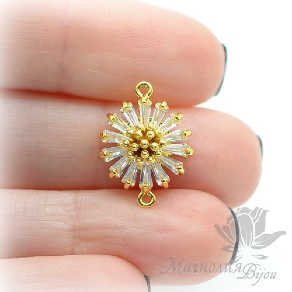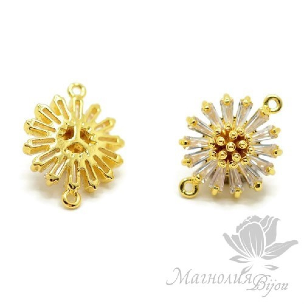 КОННЕКТОР "Маргаритка" инкрустация фианитами, цвет золото