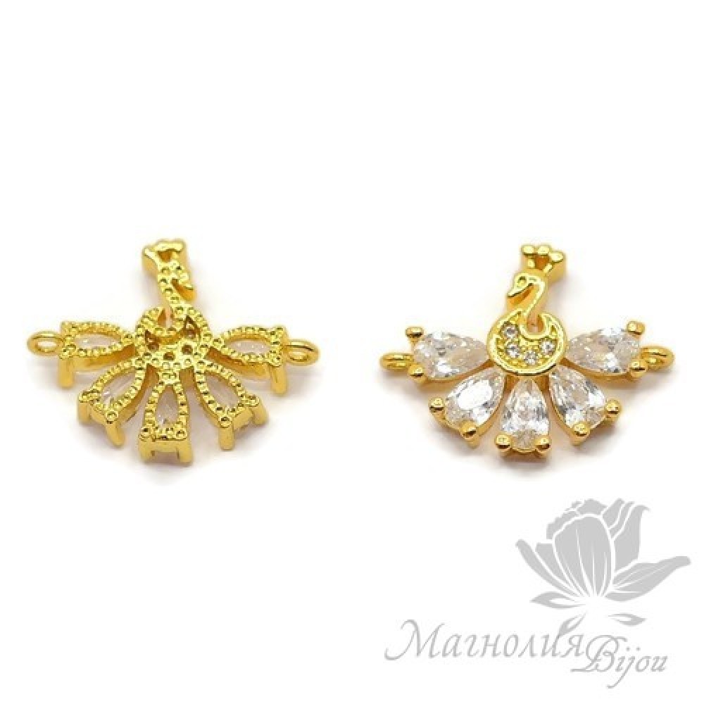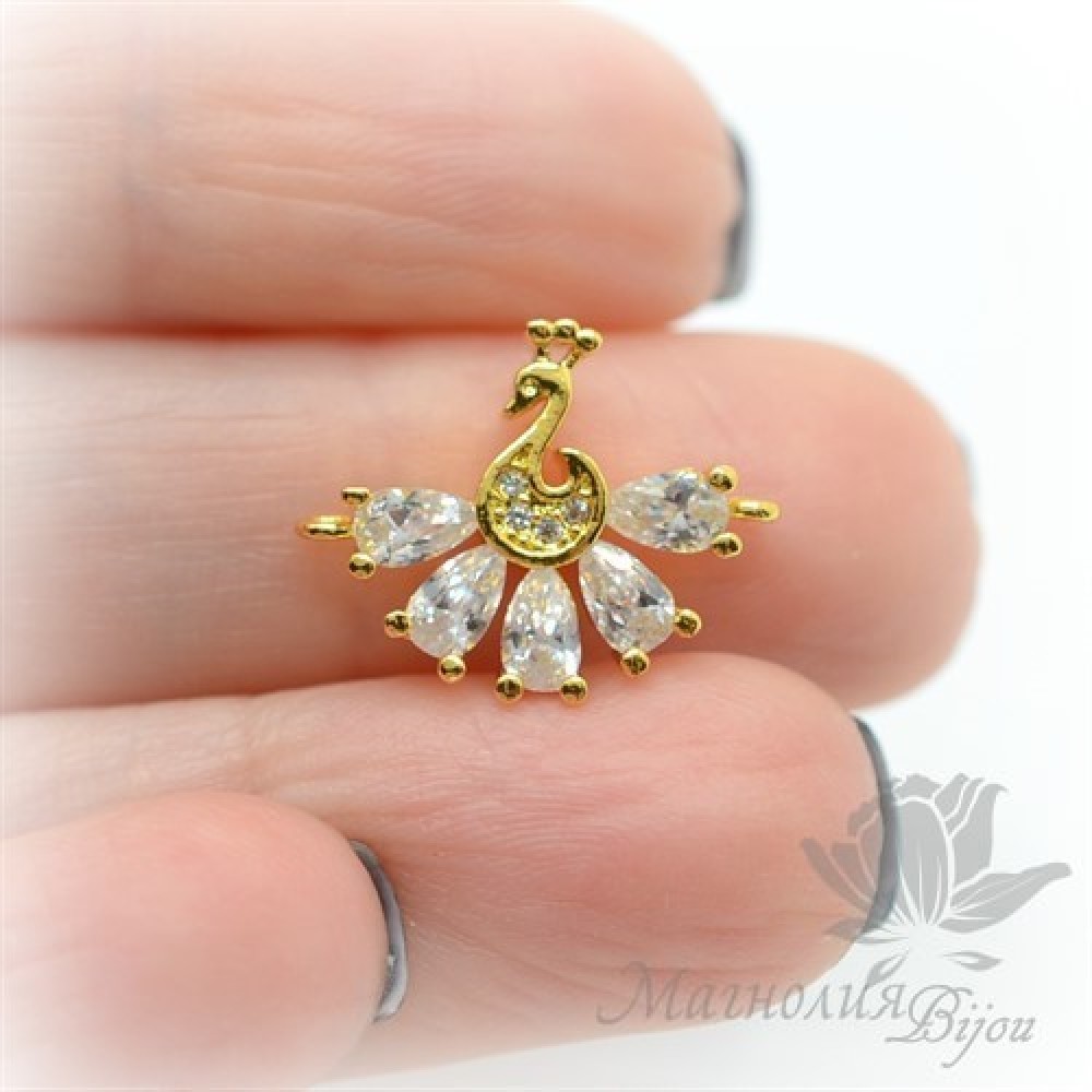 КОННЕКТОР "Павлин" инкрустация фианитами, цвет золото