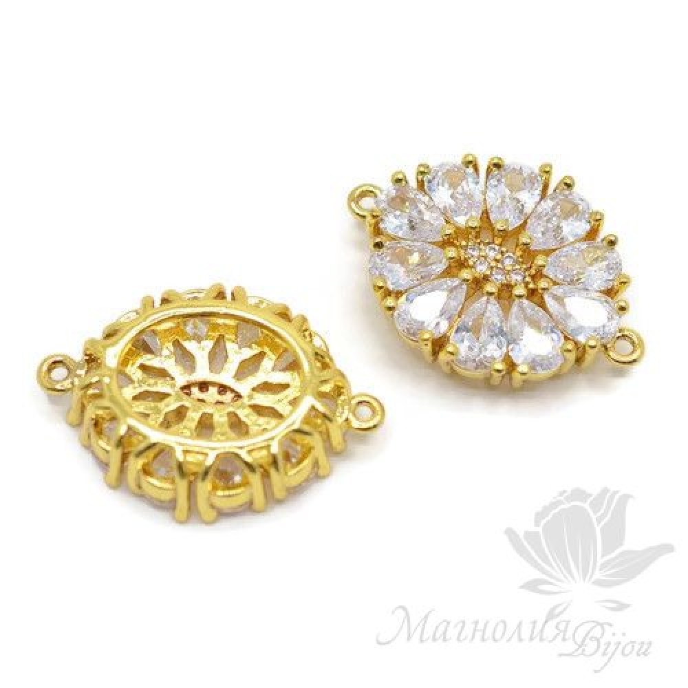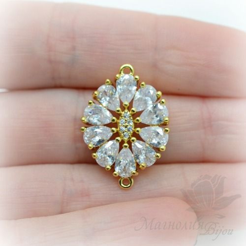 КОННЕКТОР "Роскошный" инкрустация фианитами, цвет золото