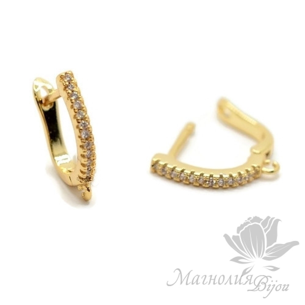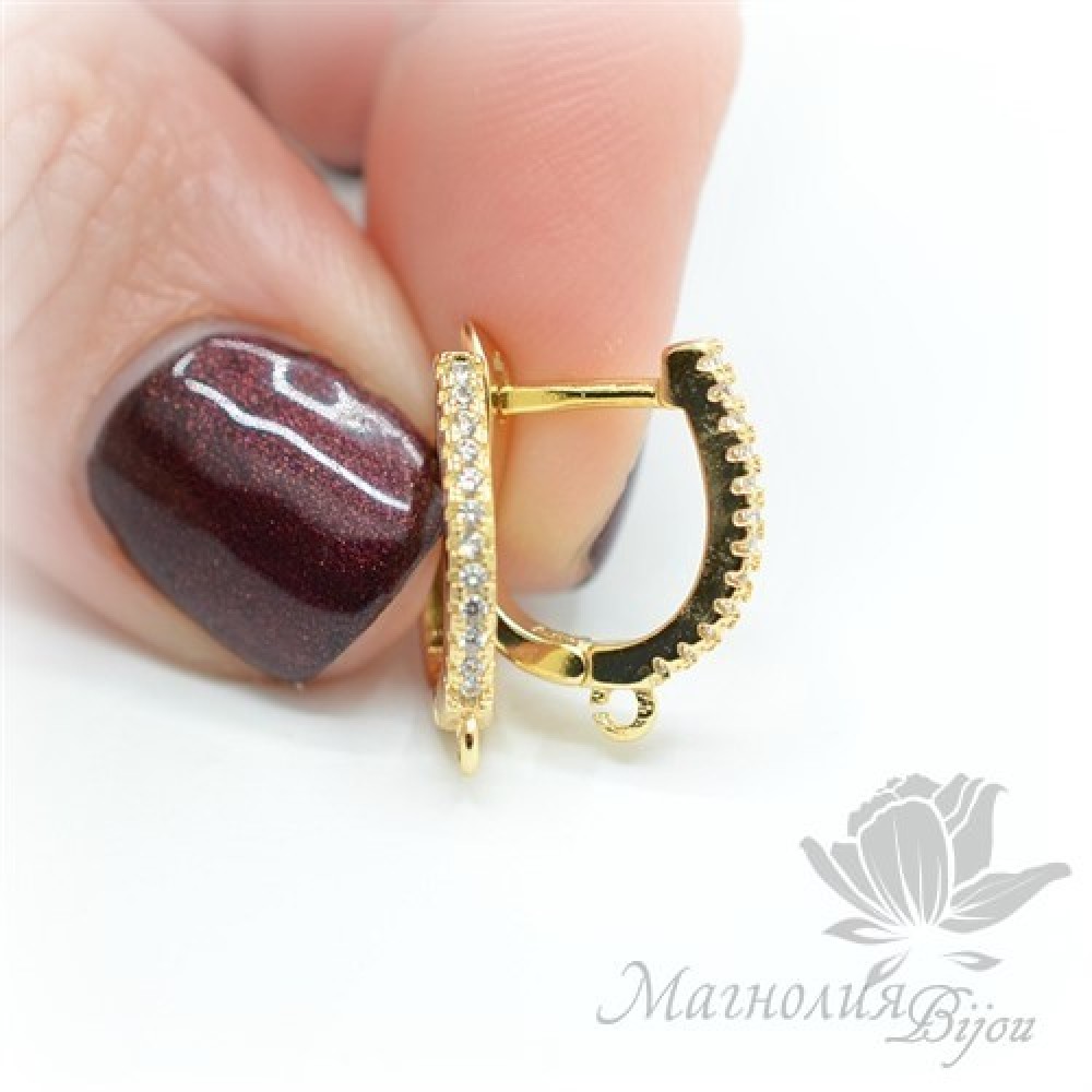 Pendiente con cierre ingles y circonitas, dorado