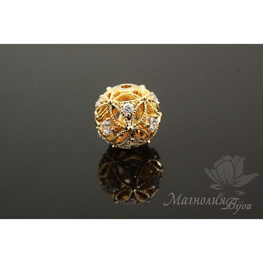 Очень красивая ажурная бусина инкрустированная фианитами. Отлично смотрится в браслетах в комбинации с натуральными камнями.