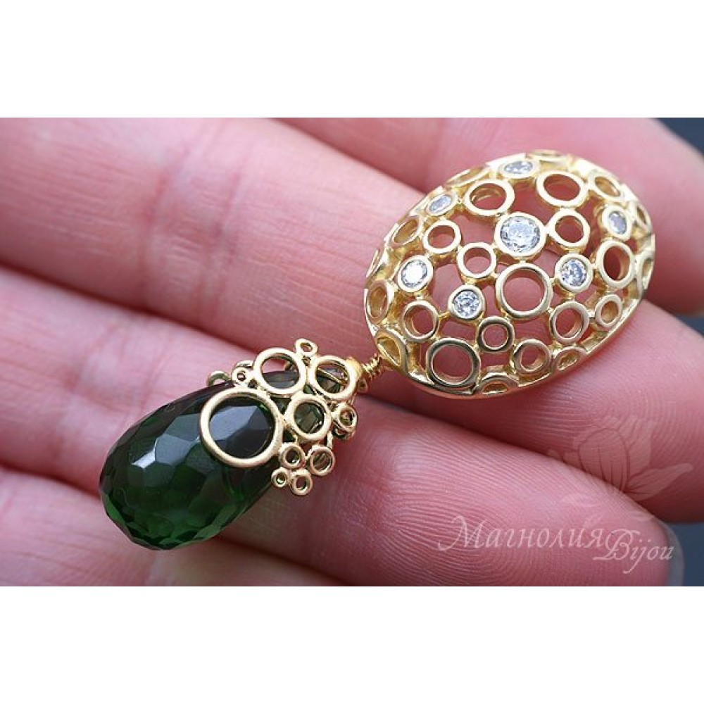 Фурнитура имеет гипоаллергенное покрытие: позолота 14 карат или родиевое(белое золото). Вставки - фианиты(цирконы). Отличается изысканным дизайном и качественным исполнением.