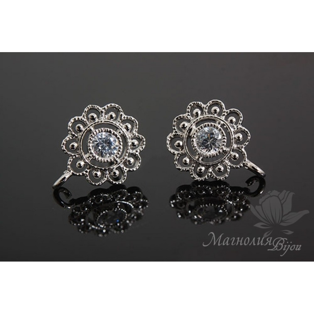 ПУССЕТЫ "Ajur Flower", родиевое покрытие