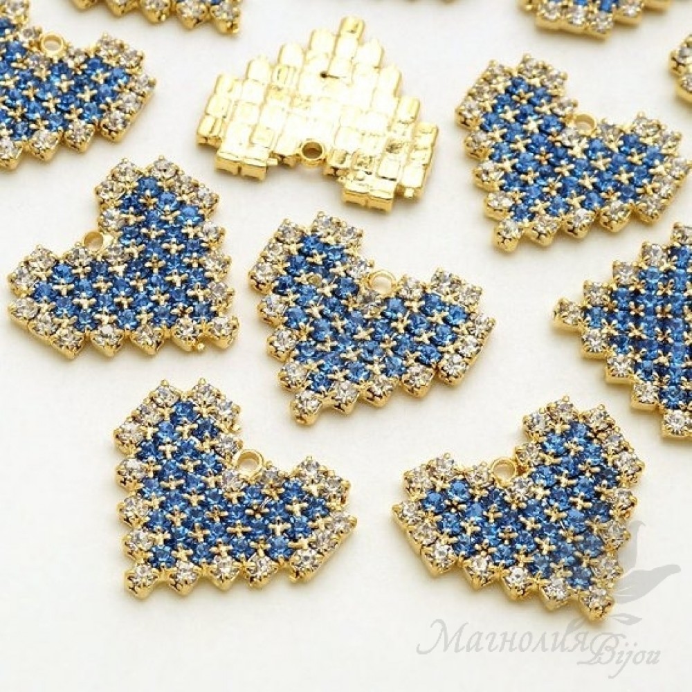 ПОДВЕСКА "Сердечко пиксельное голубое", позолота 16 карат