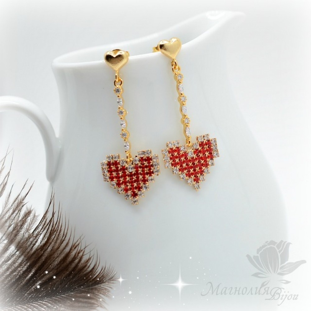 подвеска "Сердечко пиксельное красное"  Арт. K2603-G