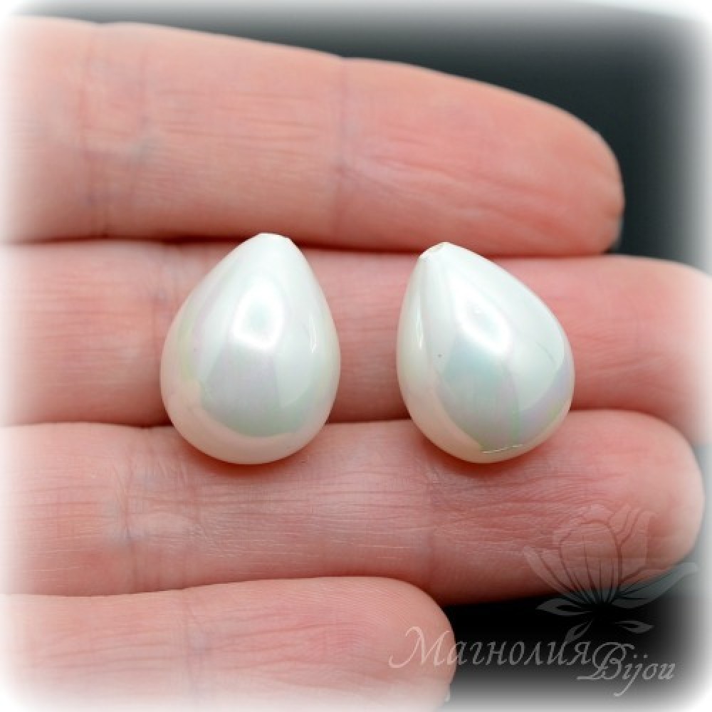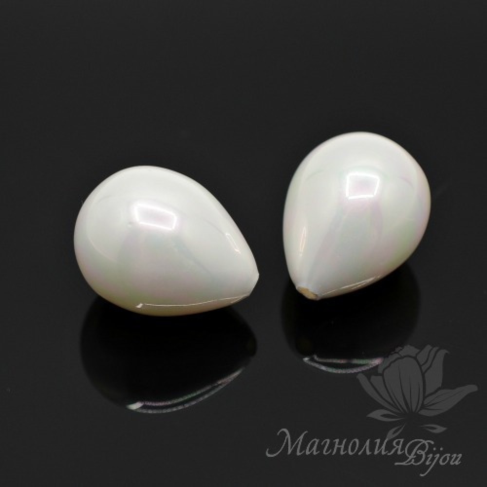 Жемчуг Майорка 14 : 18мм полупросверленная капля, белый