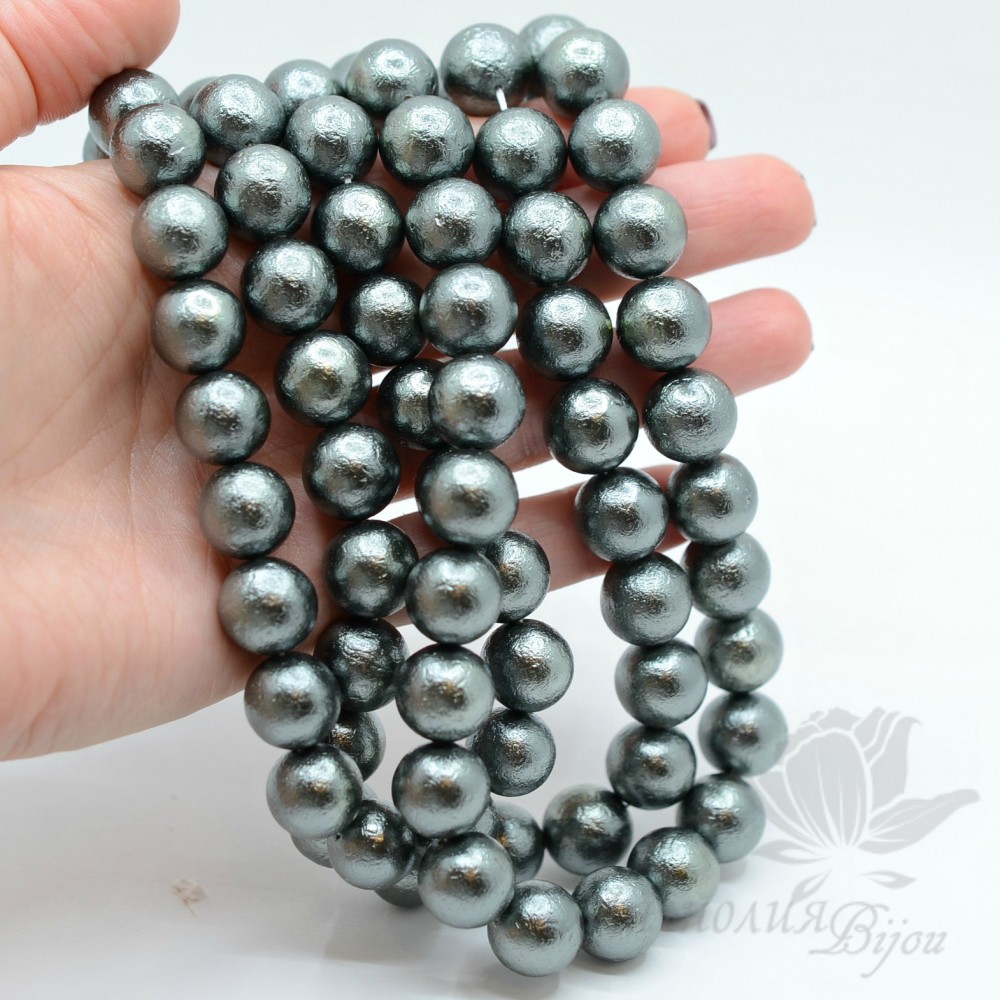 Жемчуг Майорка темно-серый фактурный 14мм, 2 штуки