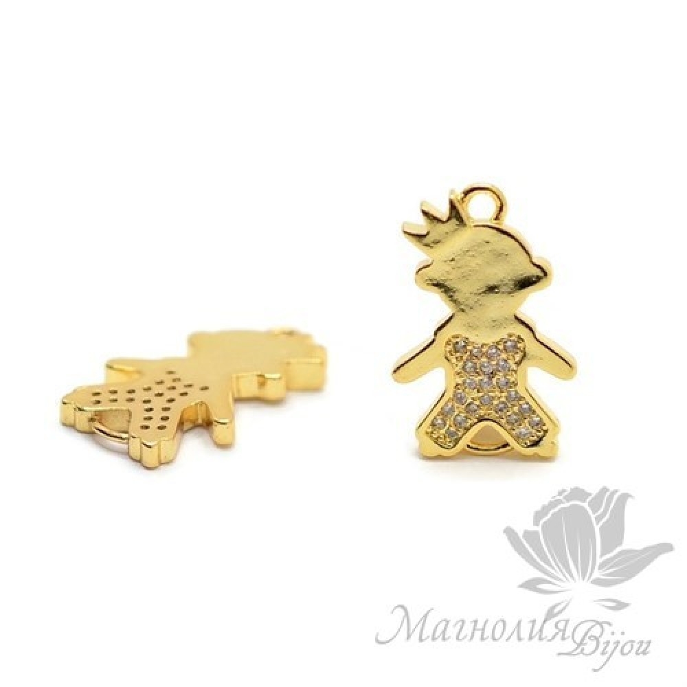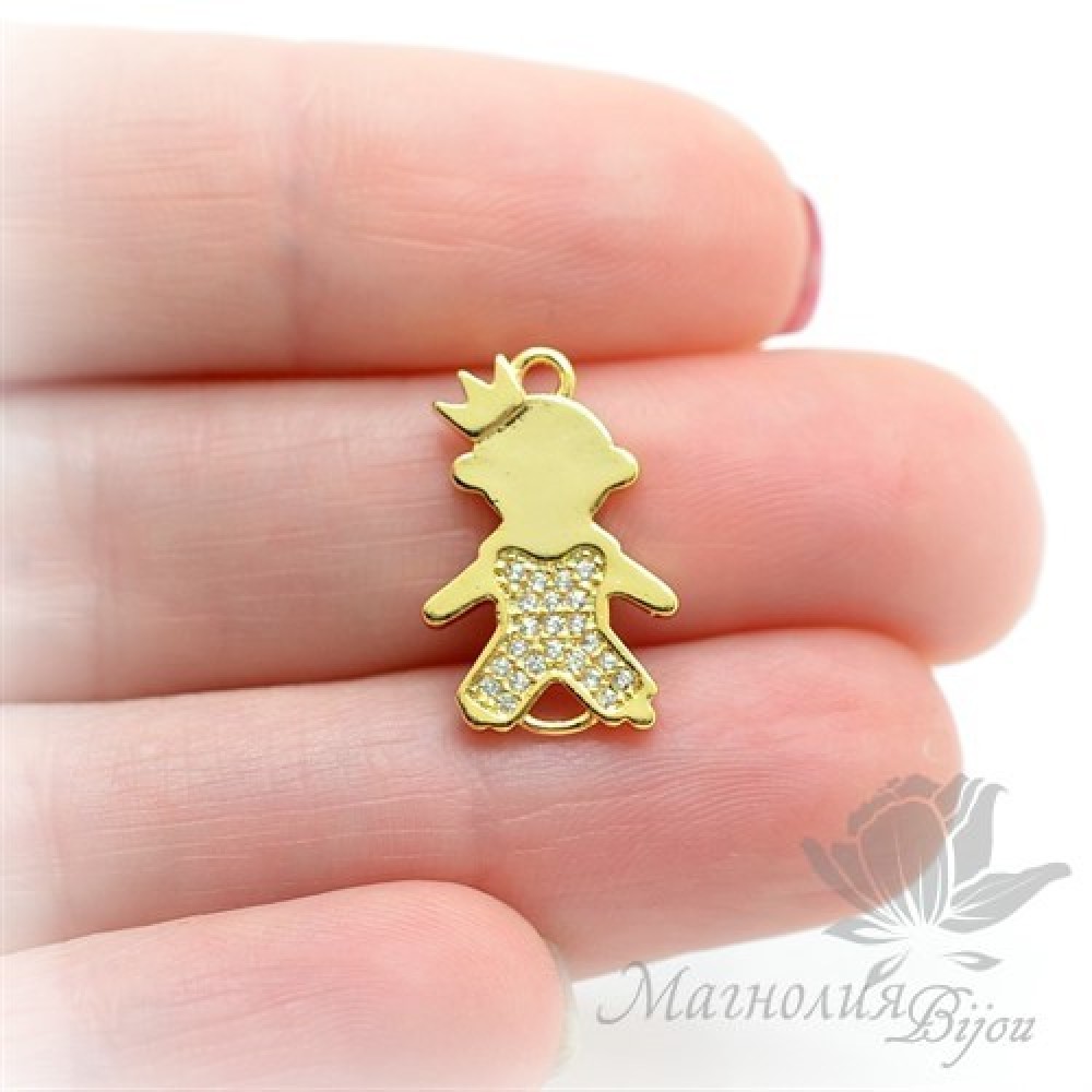 КОННЕКТОР "Мальчик" c прозрачными фианитами, цвет золото