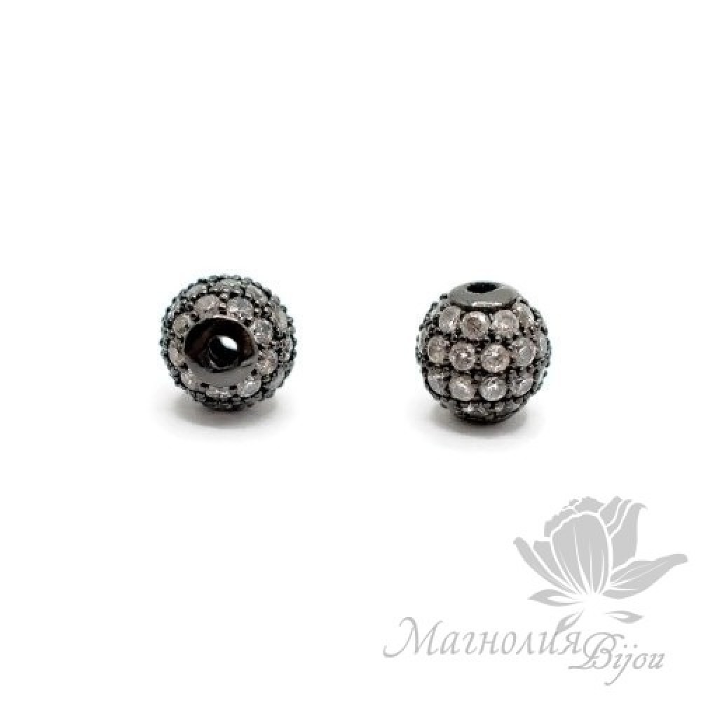 Теги: бусина с фианитами, бусина чёрная, gunmetal