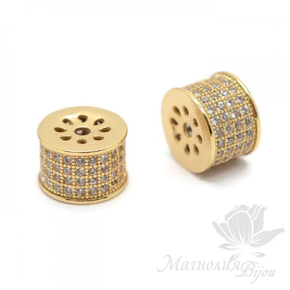 Бусина "Цилиндр" инкрустация фианитами, цвет золото