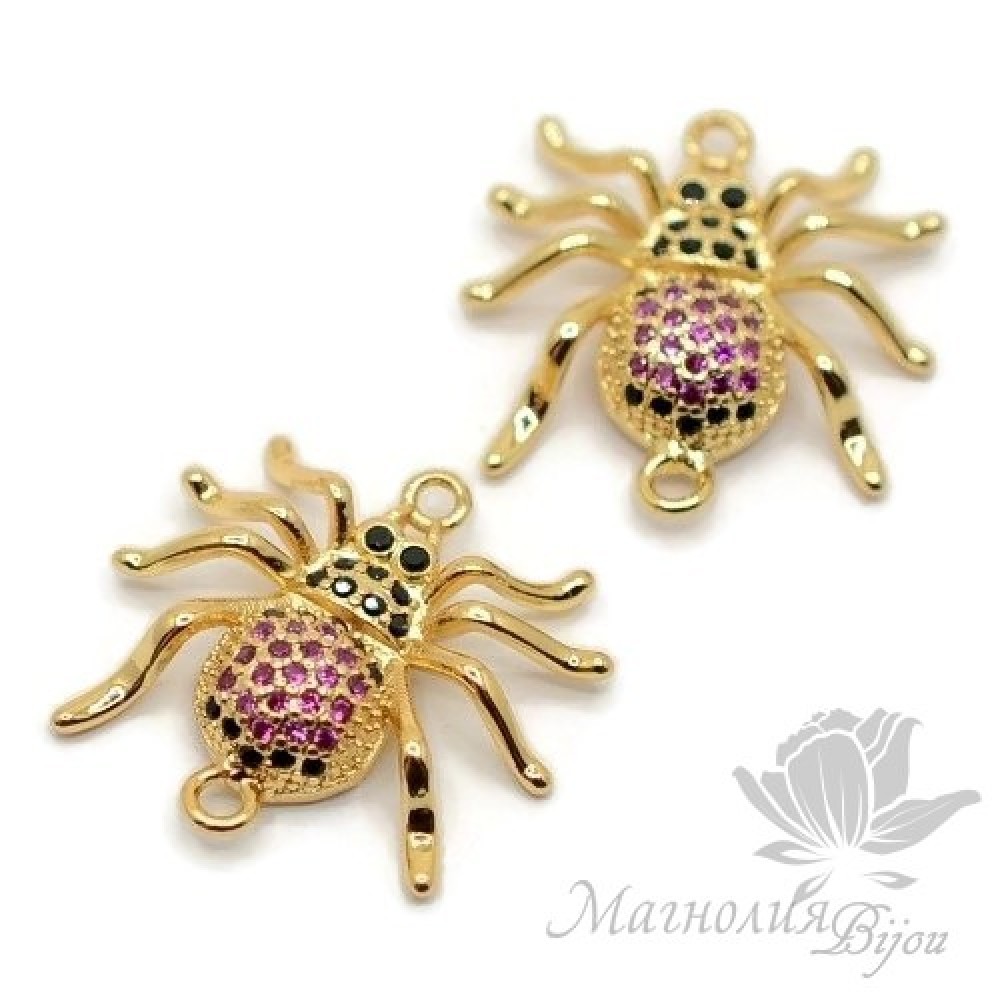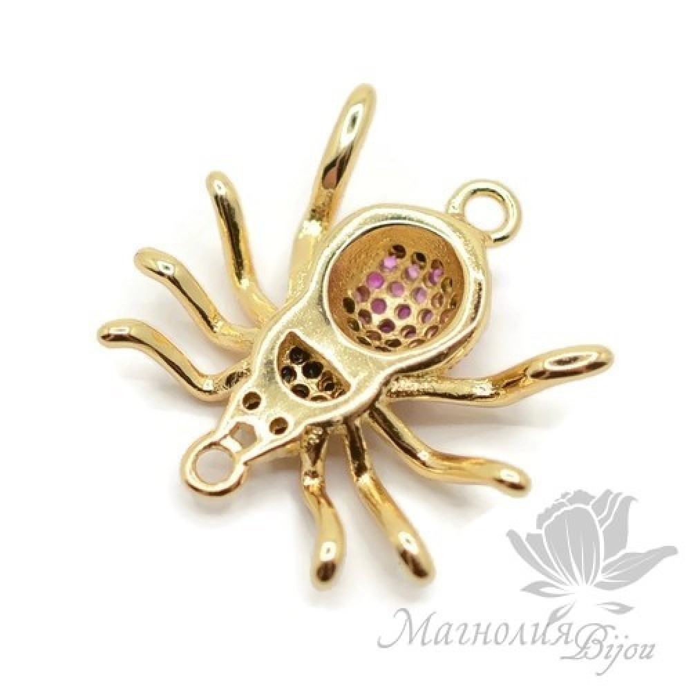 КОННЕКТОР "Паучок" с цветными фианитами, позолота