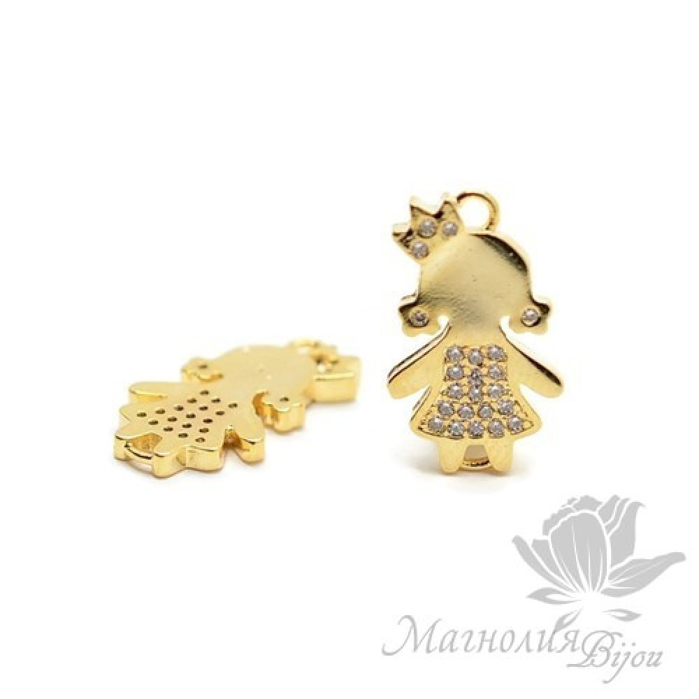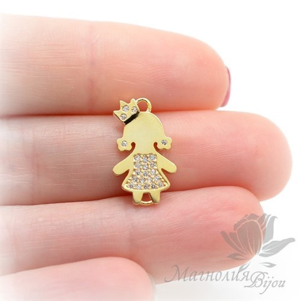 КОННЕКТОР "Принцесса" с прозрачными фианитами, цвет золото