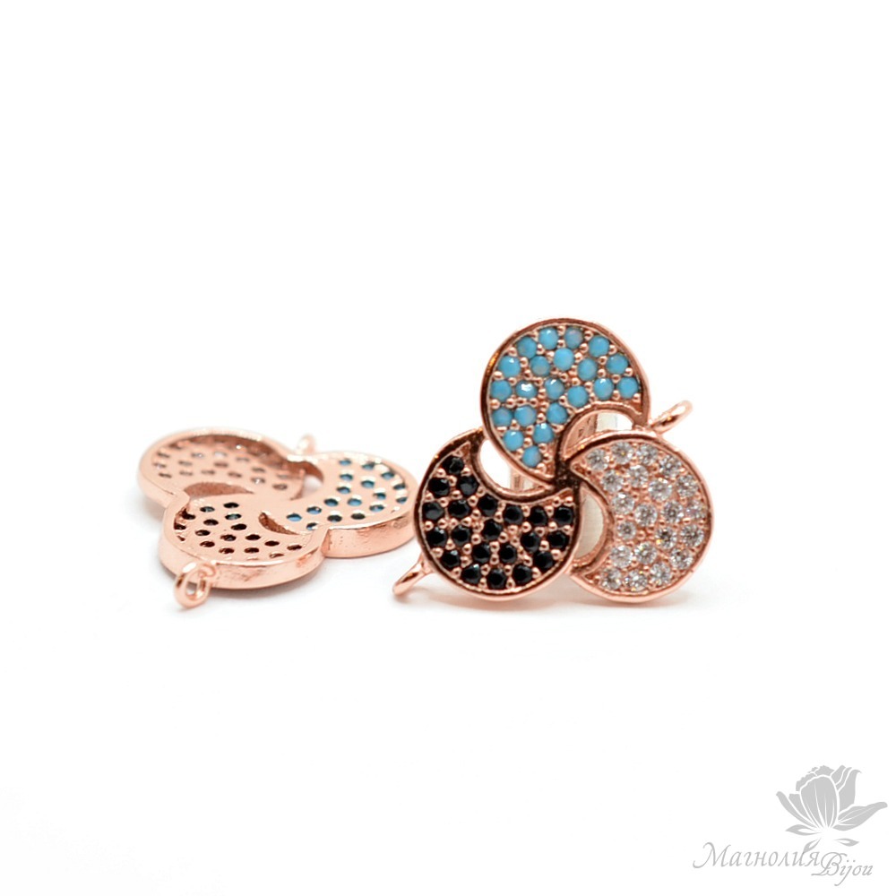 Особенностью данного вида фурнитуры является МИКРОИНКРУСТАЦИЯ цирконами(фианитами). Название произошло от итальянской технологии закрепления камней в изделии. Поверхность изделия получается как бы усыпанной камнями, находящимися очень близко друг к другу. Вся фурнитура производится на территории Китая, Сингапура, Тайланда. Качество изделий очень хорошее. Выполнены компоненты из латуни с покрытием под желтое или розовое золото, с покрытием "платина" или gunmetal(пушечная сталь). Отличается фурнитура огромным разнообразием и придает очень богатый вид украшениям ручной работы.