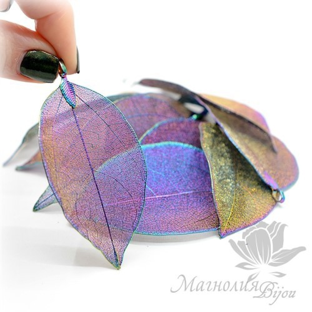 НАСТОЯЩИЕ скелетированые листья, на которые методом гальваники наносится металл и в дальнейшем крепится бейл(соединительный элемент). Листья не хрупкие, покрытие стойкое. Каждый лист уникален - ведь в природе нет ничего одинакового)