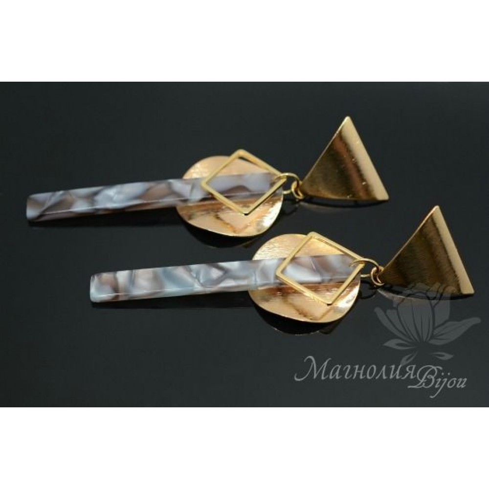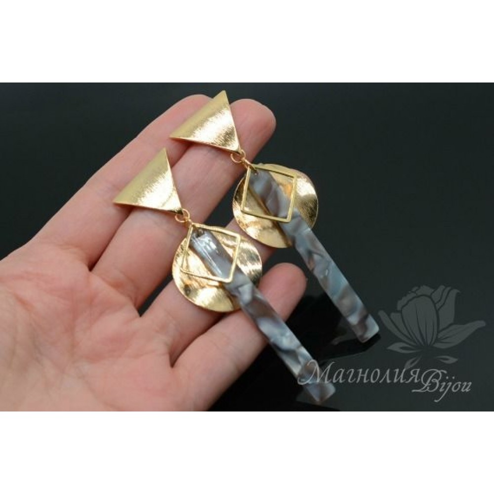 Ацетат целлюлозы - получают химическим путем из хлопка или шерсти. Красивый разноцветный эффект получают путем наслоения разных слоев. Это очень популярный материал на оптическом рынке. Оправы и солнцезащитные очки из него носят самые модные люди планеты. А кроме того он приятный на ощупь и легкий. Еще - это экологический материал, так как подвержен вторичной переработке.  В 2018 году подвески из данного материала вошли и в бижутерную индустрию. Неимоверно стильные серьги, колье, браслеты получаются в сочетании этого натурального пластика с металлическими элементами.