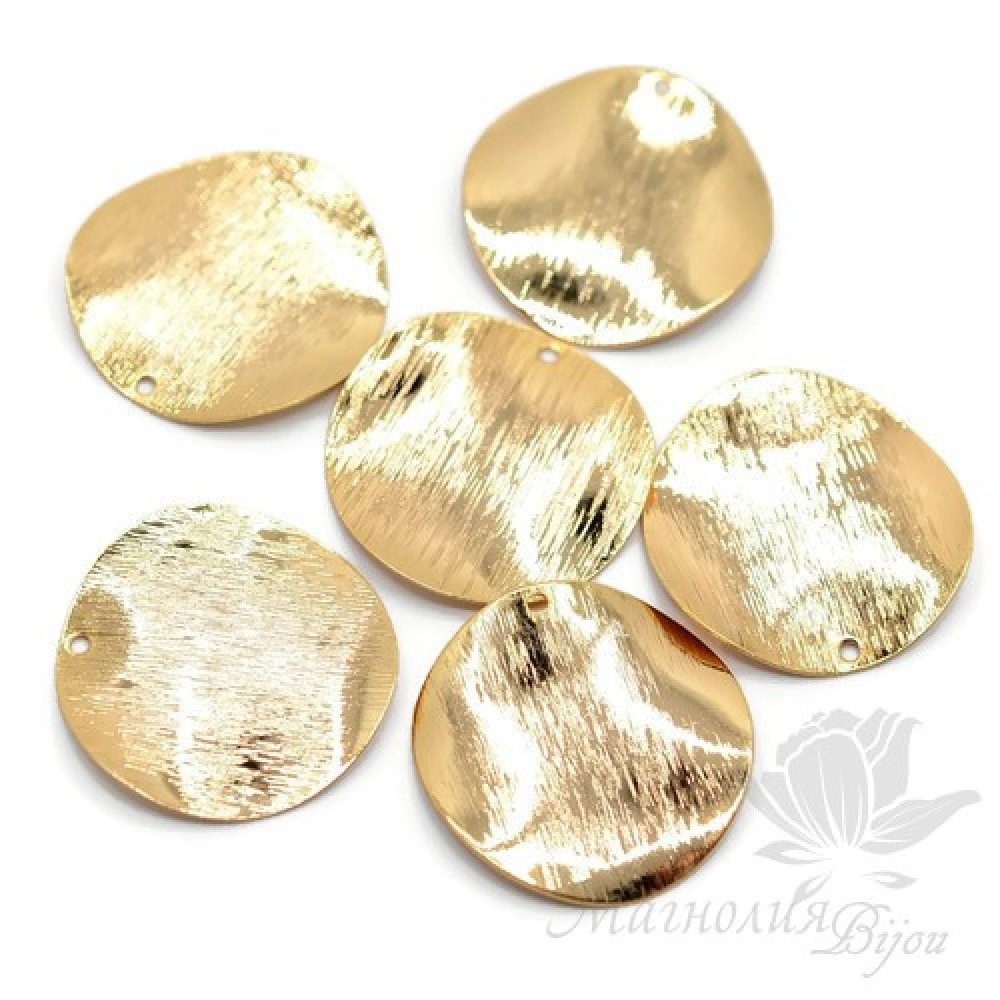 ПОДВЕСКА "Круг фактурный, мятый 25мм", позолота 18 карат