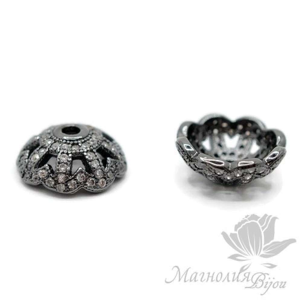 Особенностью данного вида фурнитуры является МИКРОИНКРУСТАЦИЯ цирконами(фианитами). Название произошло от итальянской технологии закрепления камней в изделии. Поверхность изделия получается как бы усыпанной камнями, находящимися очень близко друг к другу. Вся фурнитура производится на территории Китая, Сингапура, Тайланда. Качество изделий очень хорошее. Выполнены компоненты из латуни с покрытием под желтое или розовое золото, с покрытием "платина" или gunmetal(пушечная сталь). Отличается фурнитура огромным разнообразием и придает очень богатый вид украшениям ручной работы.