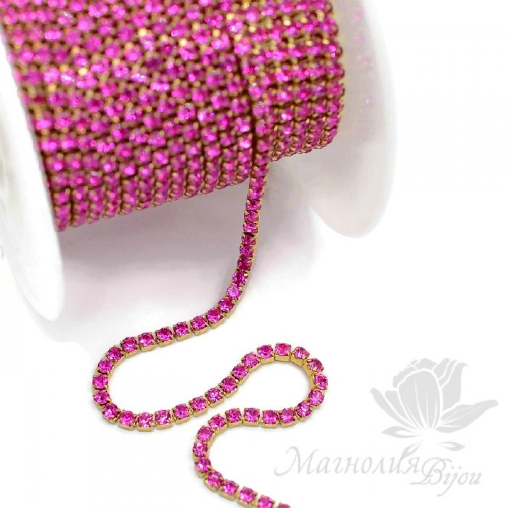 Стразовая цепь "Фуксия" 2мм(50см), позолота