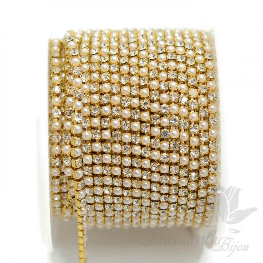 Стразовая цепь "Микс Crystal" 2мм(50см), позолота