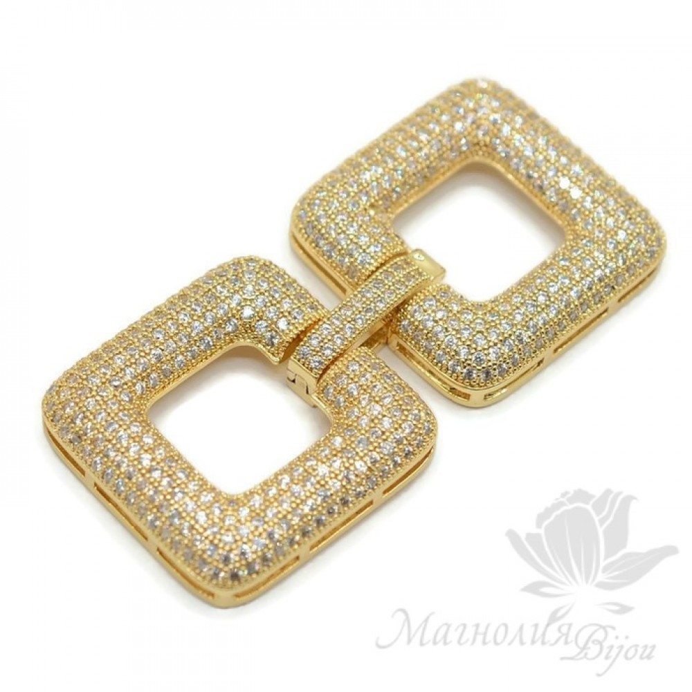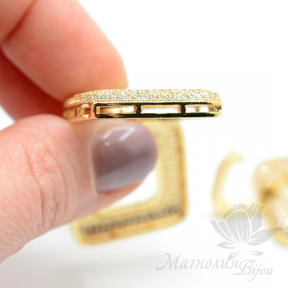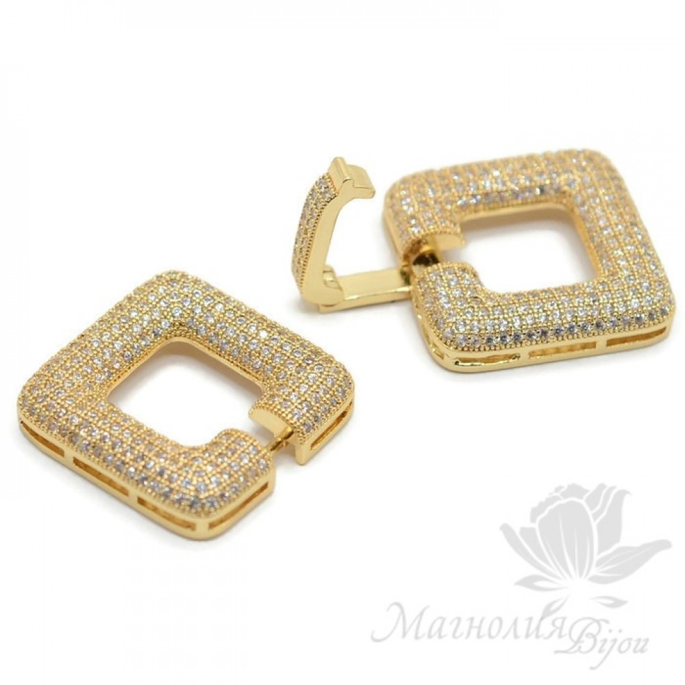 Замочек "Квадраты" инкрустация фианитами, цвет золото