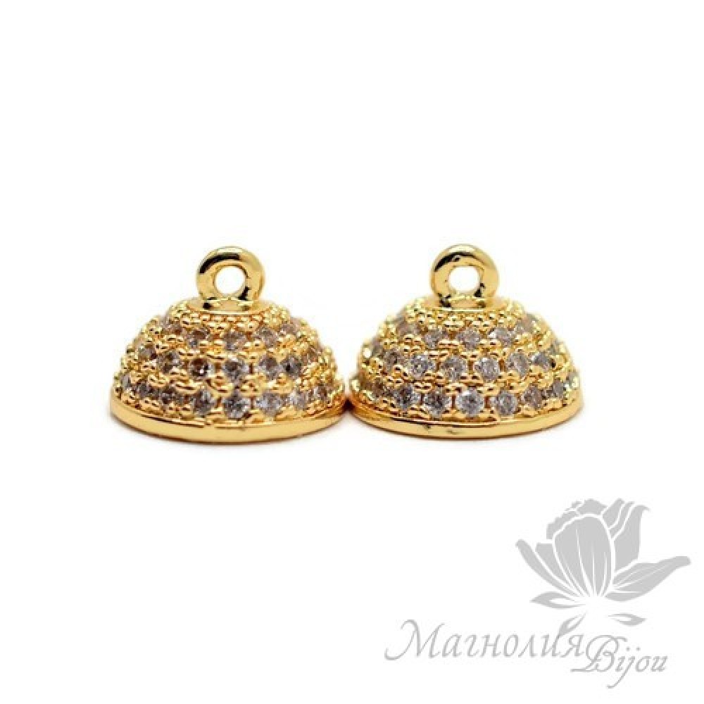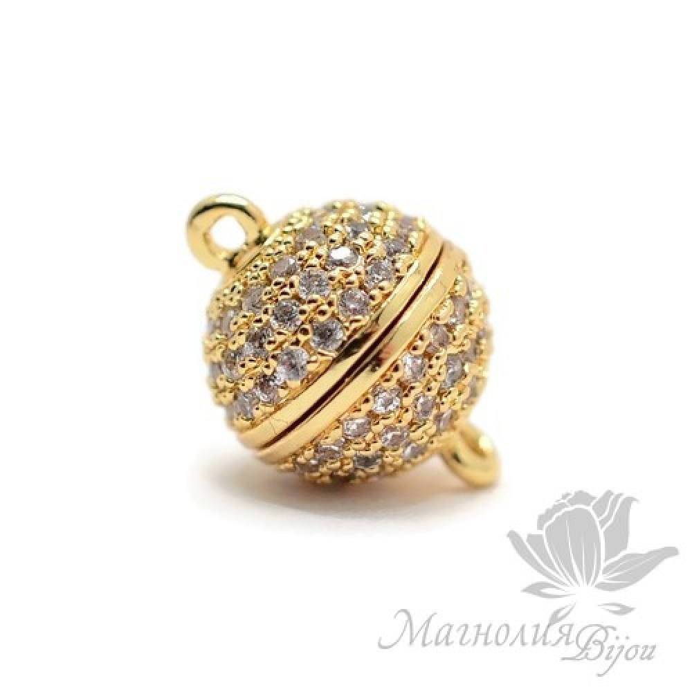 Замочек магнитный "Шар 10мм" инкрустация фианитами, позолота