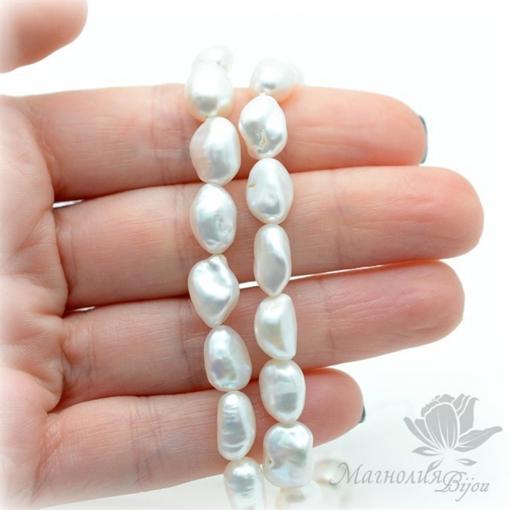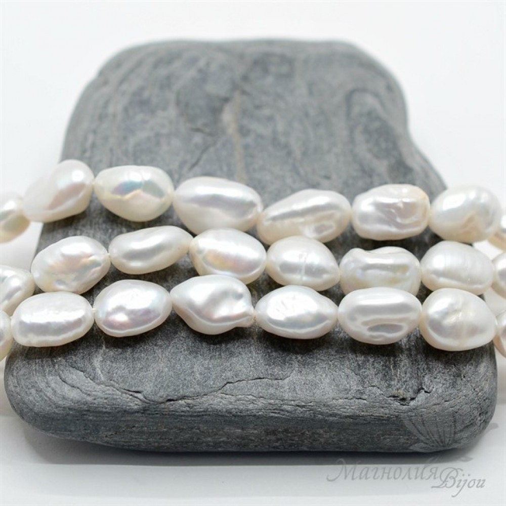 ЖЕМЧУГ барочный фриформ, 9:12мм, белый, 1/2 нити