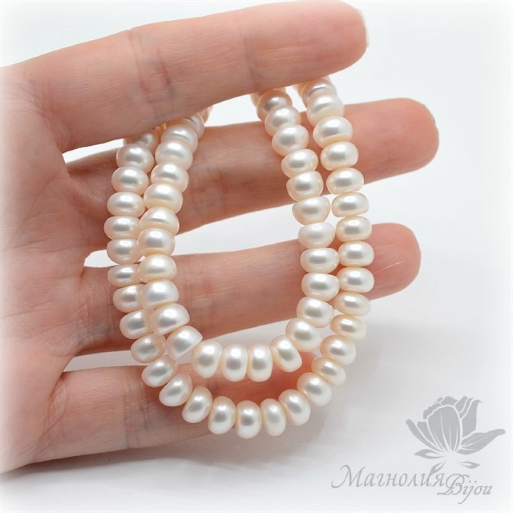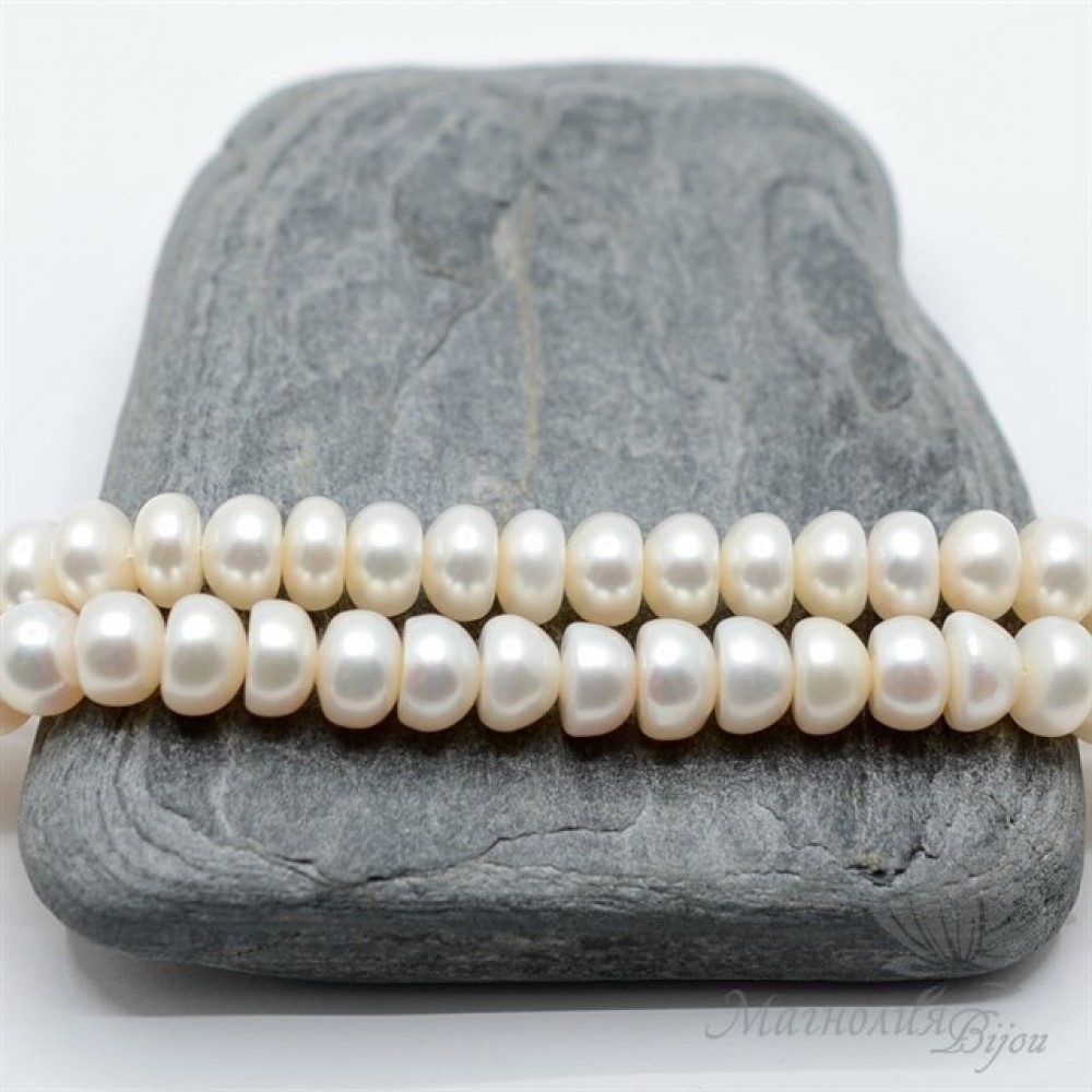ЖЕМЧУГ "Кнопка" натуральный, 5 : 7мм, белый, 1/2 нити